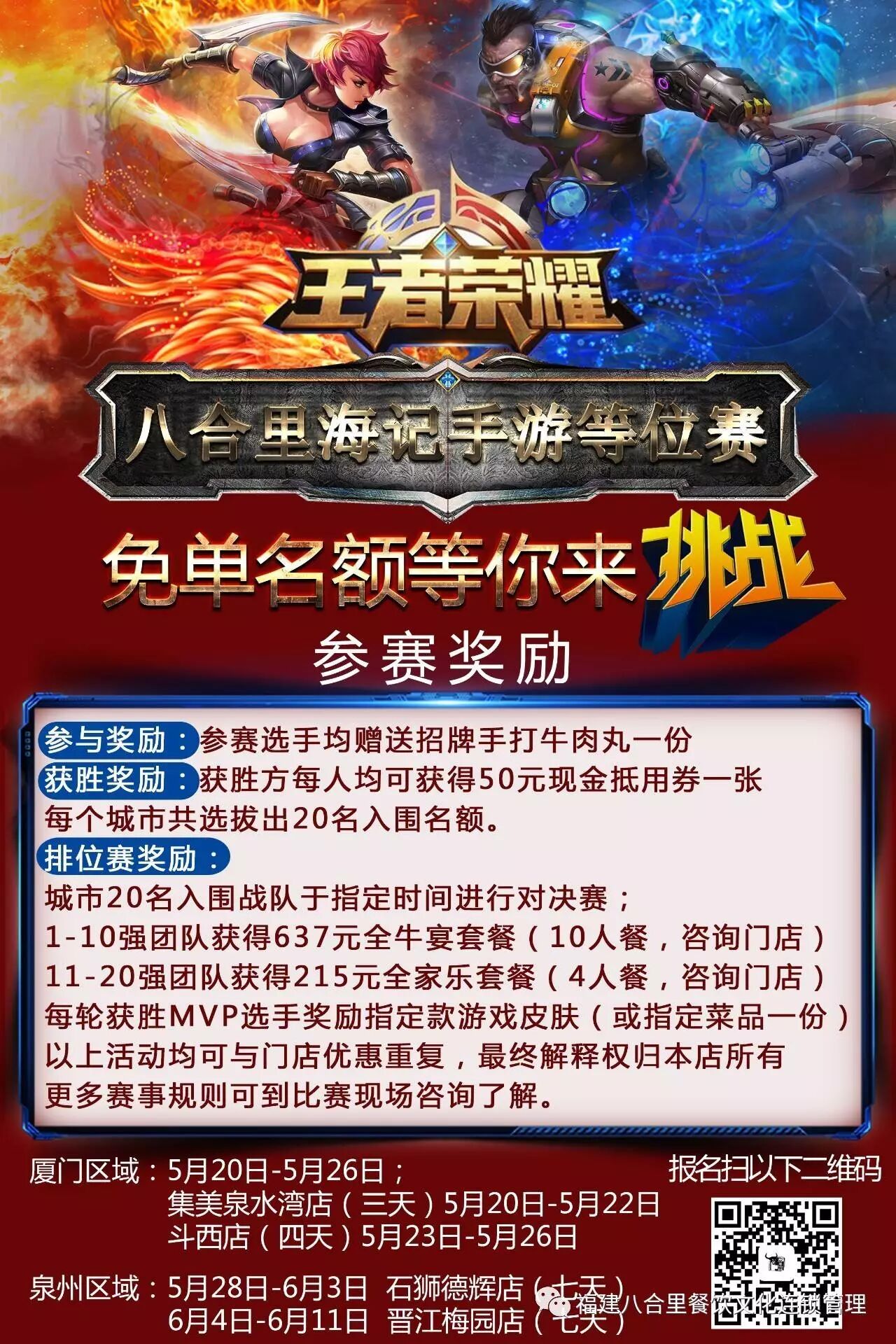 - ·八合里海记王者荣耀等位赛,免单名额约你挑战2017-05-19