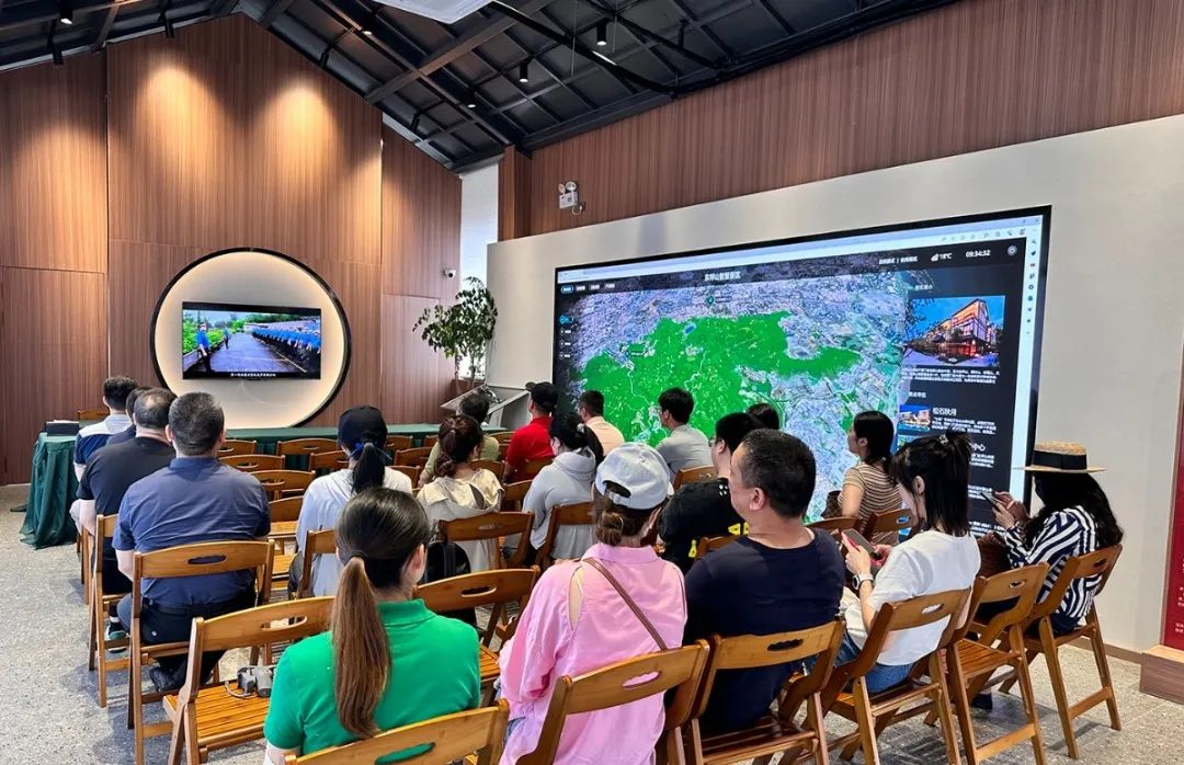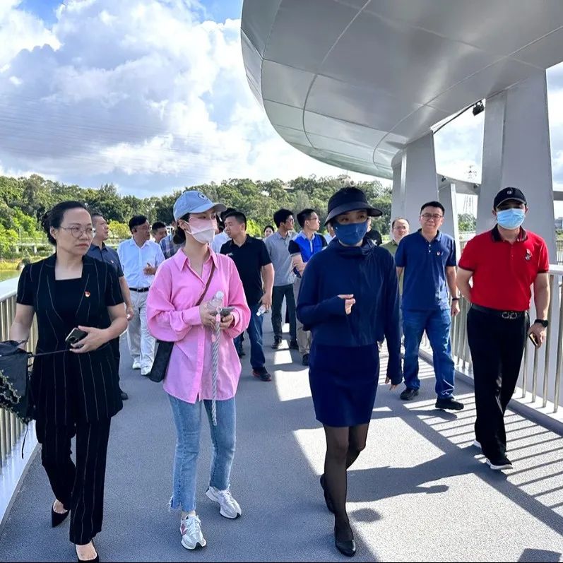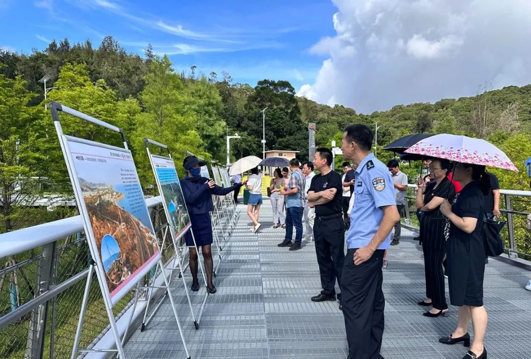 在东山水库的健康步道东山环廊节点,党员代表们一同跟随讲解人员的介绍,了解东山水库改造提升情况,实地感受东坪山发展提升的阶段性成果。